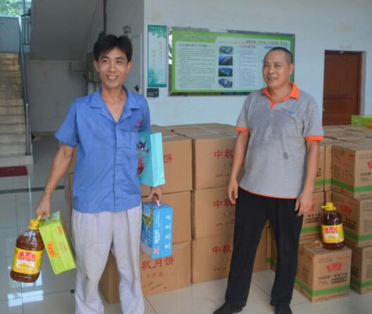 9月9日下午,開展了節(jié)日慰問活動,為全體員工送去節(jié)日的問候和慰問品,活動為每位員工精心安排了純花生油1桶、月餅1盒、牛奶及王老吉涼茶各1箱。由副總經(jīng)理陳計(jì)鄧代表公司發(fā)放,員工們接到慰問品,一致感謝公司對他們的關(guān)心,紛紛表示,將化關(guān)懷為動力,在今后的工作中奮力拼搏,不斷進(jìn)取,用自己的實(shí)際行動為公司發(fā)展助力。